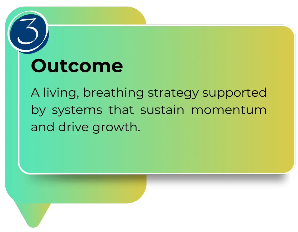 Our methodology bridges that gap. We don’t just design strategy; we build the discipline, accountability, and culture that drive results long after the planning session ends.