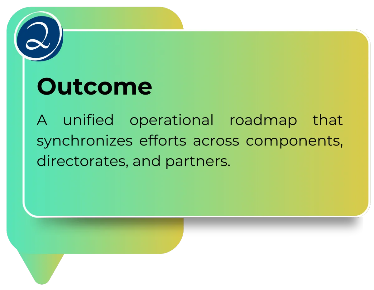 We don’t just develop plans- we build frameworks that operationalize mission objectives, align directorates, and ensure measurable impact across the command.
